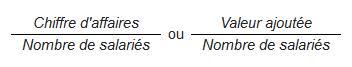 Pour mesurer la productivité d'une affaire on mettra en relation le personnel de l'entreprise avec des grandeurs significatives telles que le chiffre d'affaires :