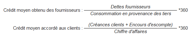 Les ratios de rotation suivants nous donnent une mesure en jours des délais de paiement des fournisseurs et des clients, ils permettent de mettre en lumière une éventuelle dérive des encaissements ou une amélioration des conditions pour le paiement des fournisseurs.