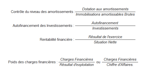 Il sera intéressant avec les ratios ci-dessus de mesurer l'impact des charges financières sur l'activité de l'entreprise et de suivre leur évolution sur 2 ou 3 ans. Une situation saine est généralement caractérisée par un niveau des charges financières ne dépassant pas 2,5 ou 3% du chiffre d'affaires.