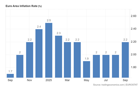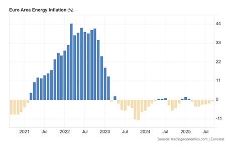 Le troisième facteur est énergétique : les prix du pétrole et du gaz restent relativement contenus, et la composante énergétique de l’inflation, encore négative en glissement annuel (–0,4 % en septembre), ne pousse plus à la hausse l’indice global.