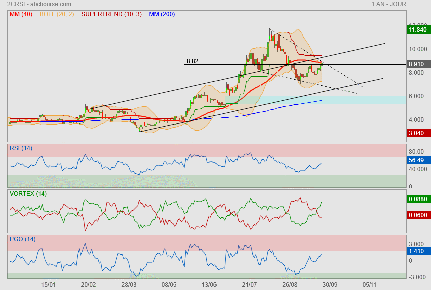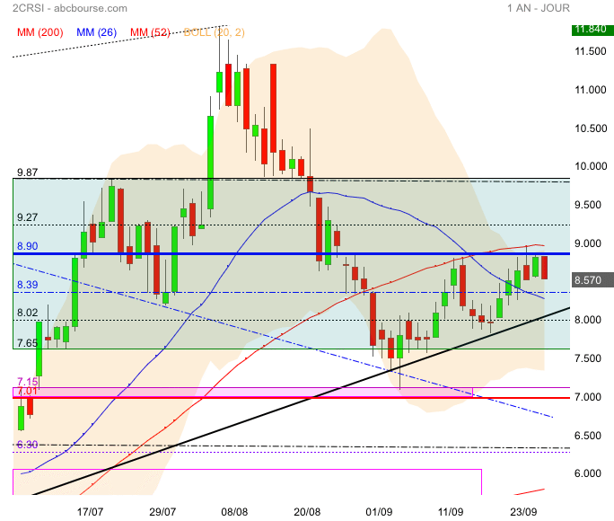 si on suit la technique bougie ID et le Bollinger on repartira sur le support des 8.02€ !