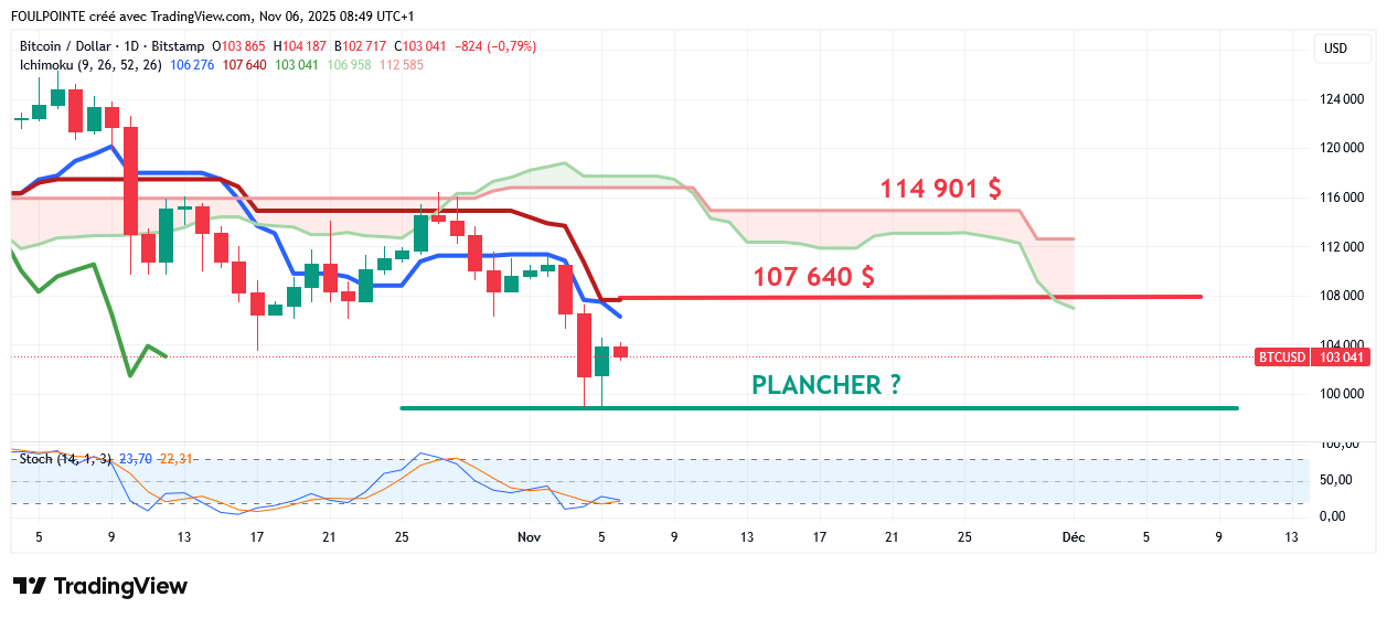 Si le plancher de 100 000 $ casse, deux extensions de plat de kijun attendent les cours sur les 99 476 $ et 93 217 $.