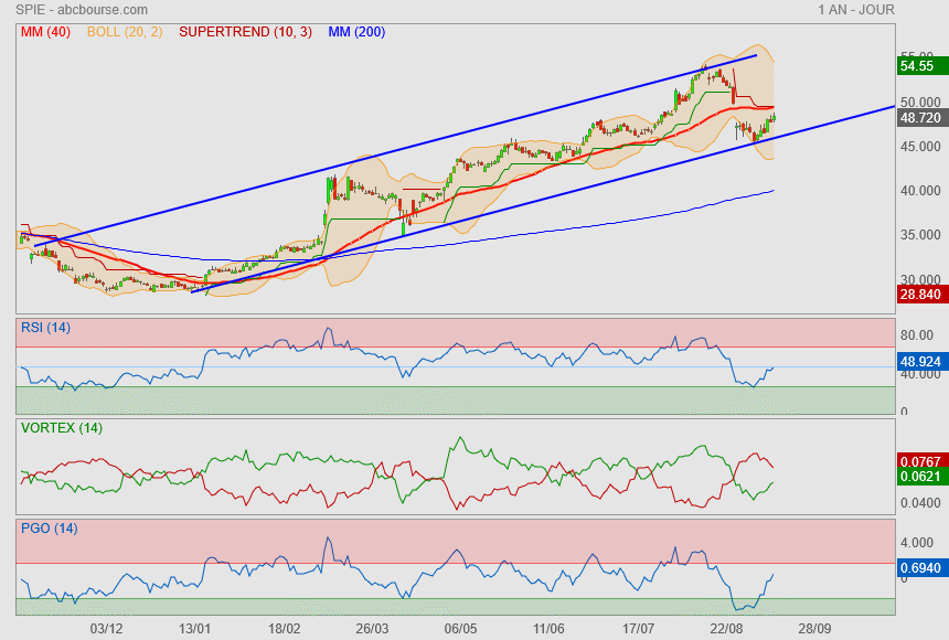 Les investisseurs actifs prendront position à l'achat sur le titre SPIE au cours de 40,84 € avec un objectif à 49.950 € en ligne de mire. Ils protégeront leur capital en plaçant un stop à 37.800 €.