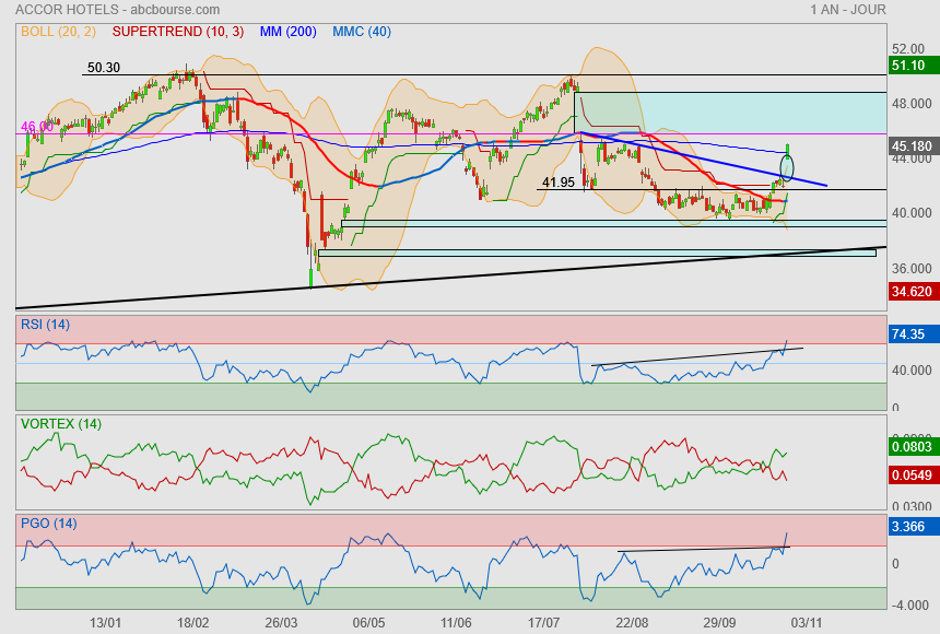 ACCOR : PREND 5%, EN TÊTE DU CAC40