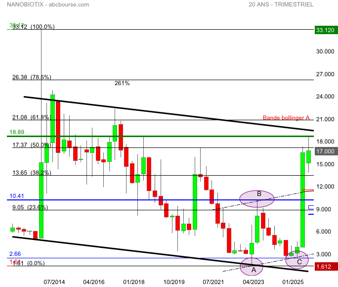 La revalorisation se poursuit , nous avons franchi ratio fibonnacci ( figure ABC ):14.82€ 138% on test actuellement retracement fibo 61% 16.05€+ 16.88€ extension 161% seuil important