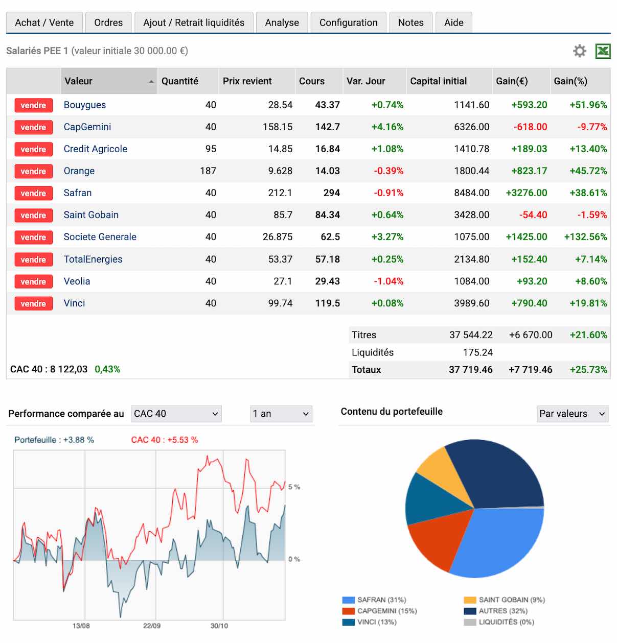 La seule dégradation du portefeuille est sur CAP Gemini qui concentre une perte actuelle de -18,78% sur la ligne.