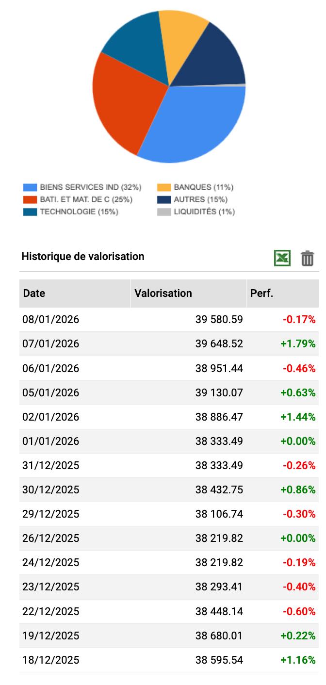 • le résultat de l'année 2025 de ce portefeuille est à +27,78% au 31 décembre 2025 contre seulement + 10,22% pour le CAC 40…