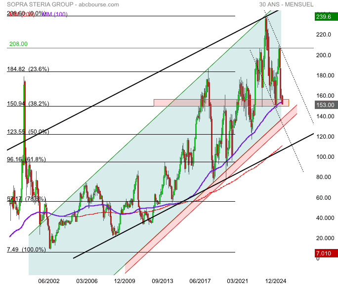 Test de mm100M:154€: fibo 38% 150.94 si cassure on reviendra tester le canal haussier (vert) on surveille 🧐