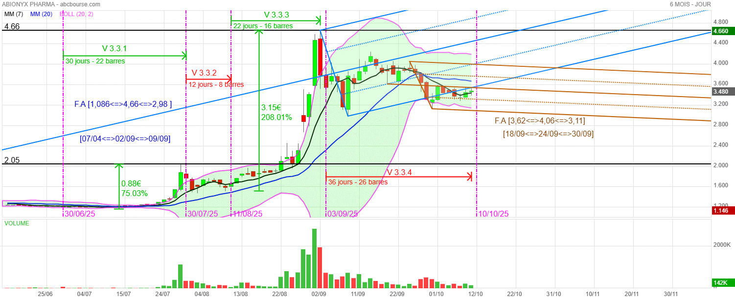 En synthèse : La fenêtre de temps pour la fin de V3.3.4 rest cohérente, et la cible à 4,66€ redevient atteignable si et seulement si on casse 3,70€ avec du volume.
