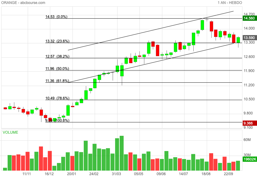 Orange tire bien son épingle du jeu en ce vendredi , s'octroyant meme une légère hausse de 0,22 % alors que le marché dévisse.