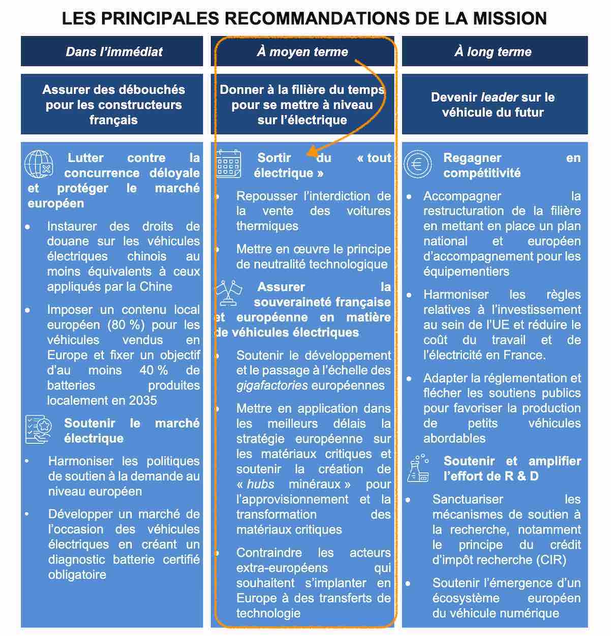 On voit que le rapporteur est un zélu écologiste… Il a quasi fait l'impasse sur l'une des principales recommandations qui est "A moyen terme, de sortir du Tout électrique"