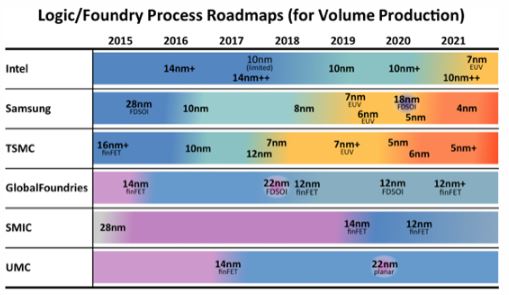Il ne s'agit pas de production mais de technologie , à savoir la finesse de gravure permettant jusque là d'intégrer les puces sur les wafers (loi de Moore) .