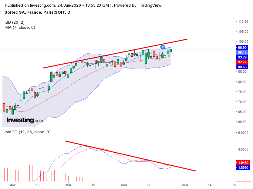 ce que je vois c'est qu'il faudra regarder si le cours enfonce la ligne rouge