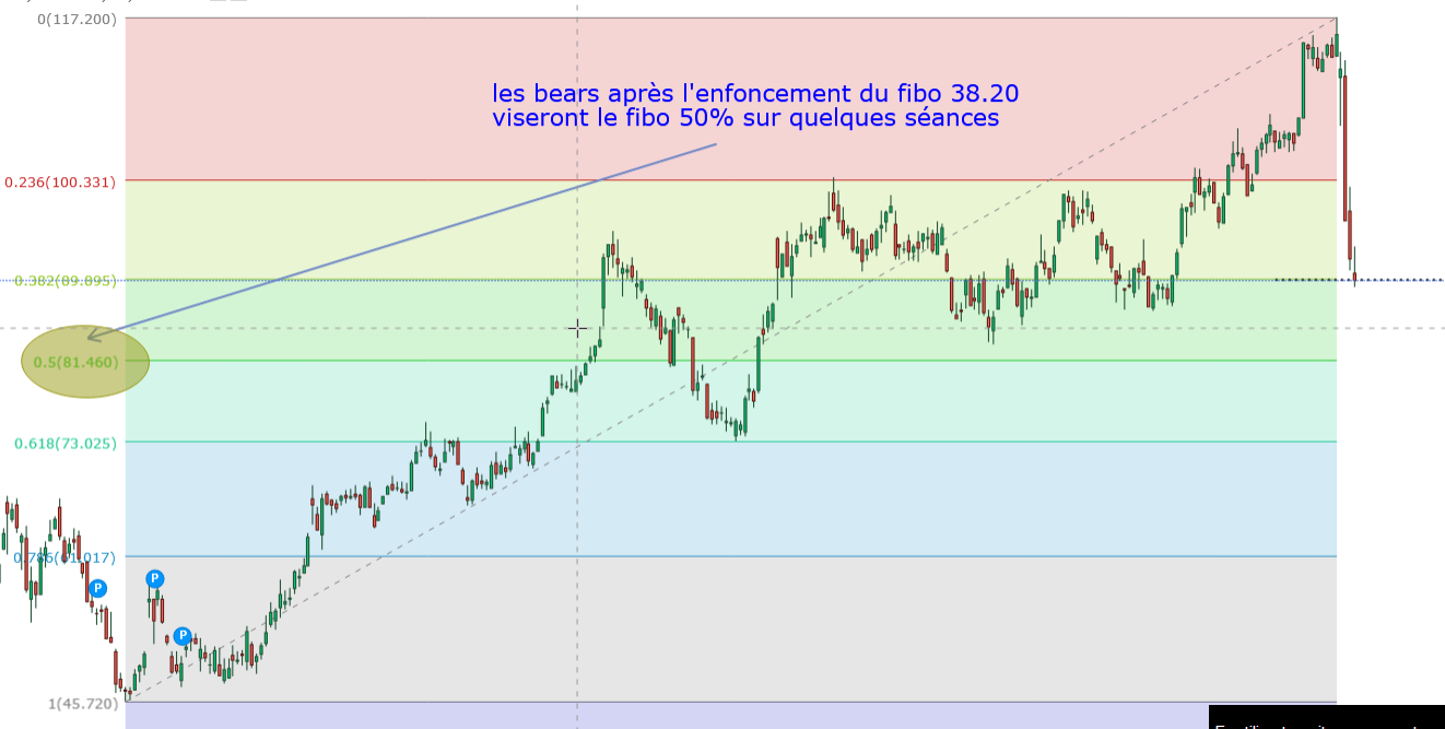à 9h22 ce matin j'écrivait ça : """"le test des 50% du fibo est l'objectif des bears""" (81.46 sur le graphe joint). C'est déjà fait et même plus !