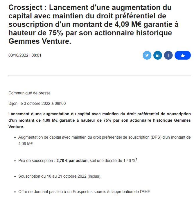 La question est de savoir si Crossject a besoin d'un nouveau financement ?