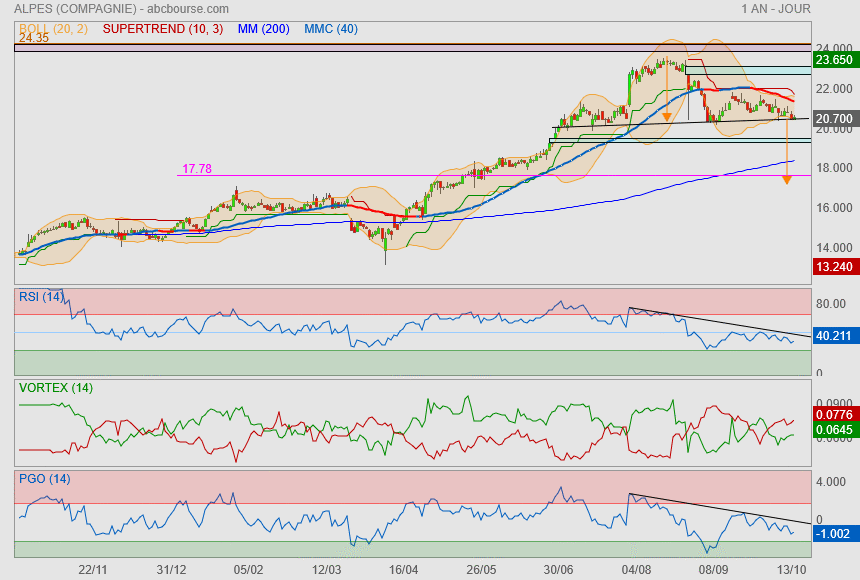 Comme je le disais précedemment, cela libererai un joli potentiel puisqu'il n'y a rien avant le dernier point haut des 24.50."
