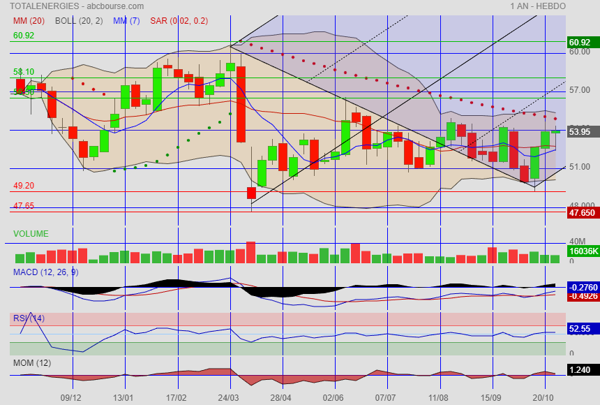 - que le cours de TotaleEnergie en octobre 2025 n’est plus que de 53,95 euros,