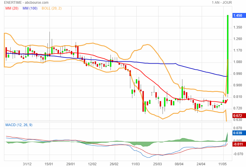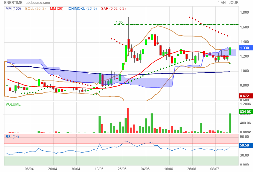 Dans un important volume aujourd'hui un signal fort de hausse, sortie par le haut ICHIMIKU et BOL, Parabole SAR passe au vert, hier validation MM20, RSI 59,58, une news dans l'air?