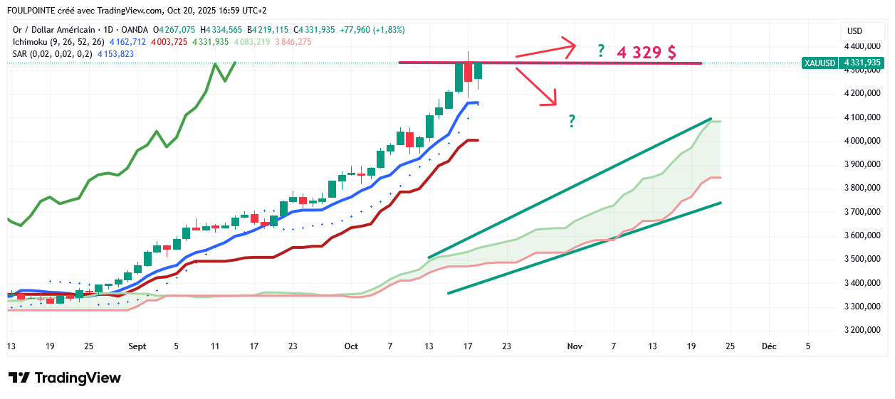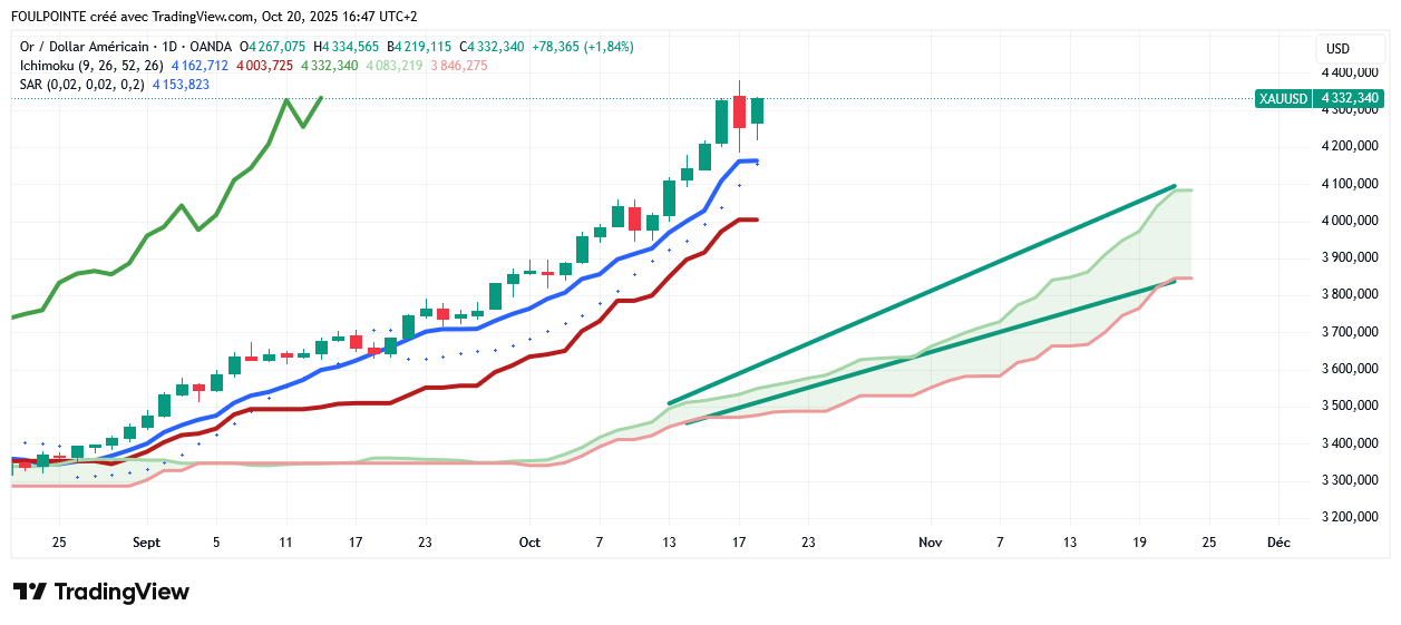 Le métal précieux continue de bénéficier du soutien des perspectives accommodantes de la Réserve fédérale (Fed), de la paralysie prolongée du gouvernement américain et de la persistance de l'incertitude géopolitique et économique. Ces facteurs, combinés à une demande soutenue des banques centrales et à de forts afflux de capitaux vers les ETF adossés à l'or, maintiennent la tendance haussière générale intacte.