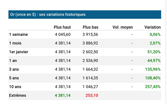 Puis je me compare avec l'or, le CAC... et je note si j'ai du delta avec eux, ou si je suis en retard ou en avance.