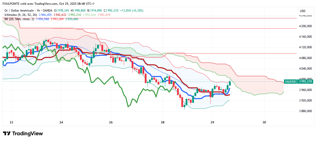 Dans sa dernière note de recherche sur l'or, Bernard Dahdah, analyste des métaux précieux chez Natixis, a présenté trois scénarios quant à l'ampleur de la baisse possible des prix de l'or. Ces perspectives interviennent alors que le cours de l'or au comptant s'établit actuellement à 3 996,60 $ l'once, en hausse de plus de 1 % sur la journée.
