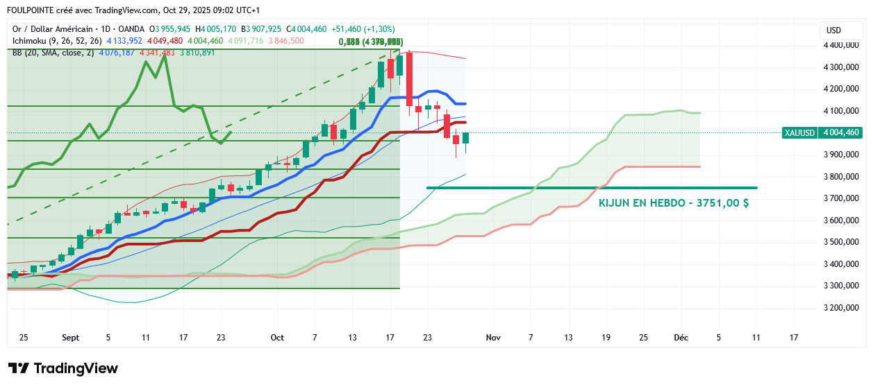 - une 1 ère résistance sur les 4 004 $ ( extension de plat de kijun ) et,
