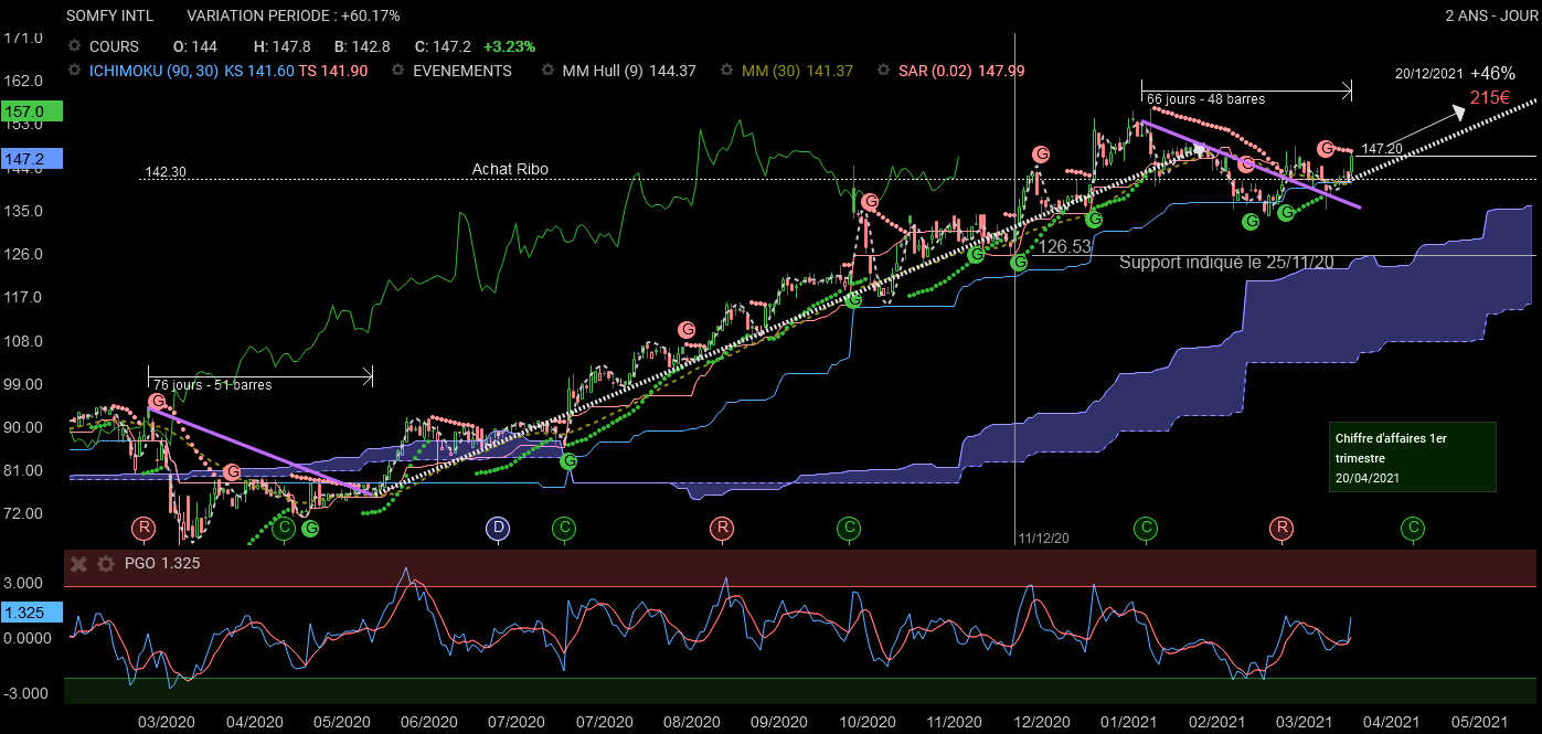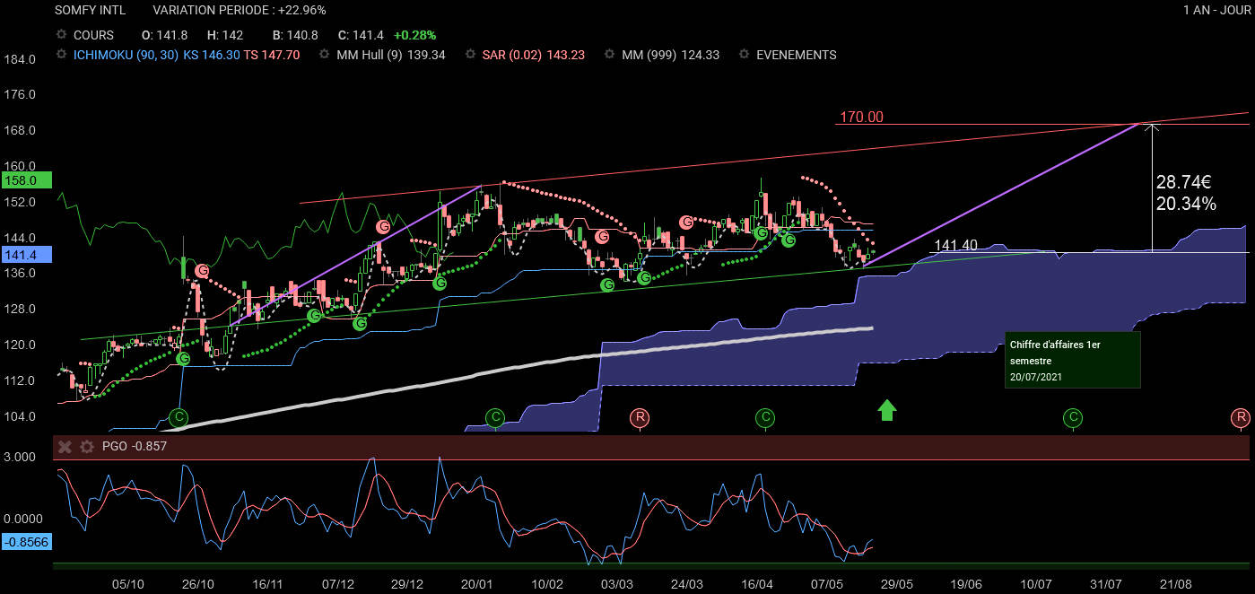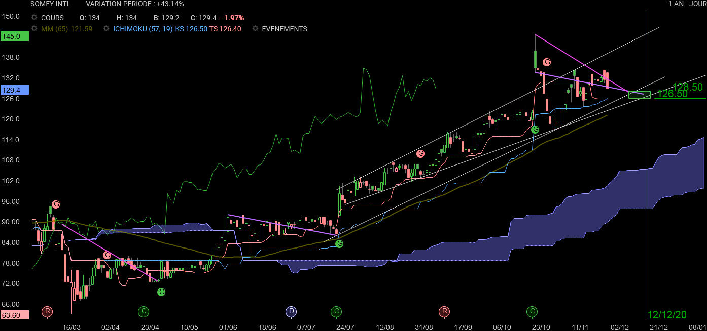 Pour rappel, SOMFY est leader mondial sur son créneau. La limitation actuelle de la hausse du cours est liée à la pénurie de composants électroniques. C'est donc le moment idéal pour se placer dans l'attente de la décongestion du secteur des composants.
