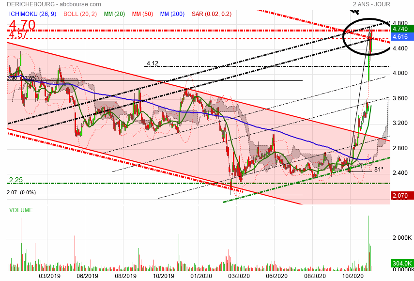 Pour Derichebourg qui nous intéresse l' angle affiché dans le graphique est de 81 degrés du quasiment vertical cela donc correspond à la présentation du Blow-off.