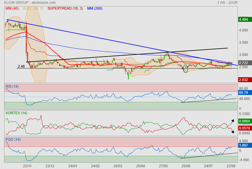 effectivement, c'est intéressant et une cloture ce vendredi 31 m'envier 2025 à 2.72 serait intéressante en bougie hebdomadaire . J'ai lu concernant la dernière réunion cette semaine d'Elior en assemblée qu'il y avait eu mauvaise interprétation de ce qui avait été décrit lors des derniers résultats et qui avait alors entrainé la chute de l'action. Je reste très positif pour l'avenir et je suis confiant pour une hausse renforcée par le programme de rachats d'actions .