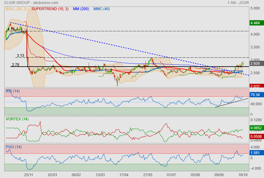 La bougie hebdomadaire qui pourrait être visualisee vendredi soir sera un indicateur supplémentaire. Un niveau de 2.77€ serait intéressant pour la suite.. Rendez vous pris à 17h36.