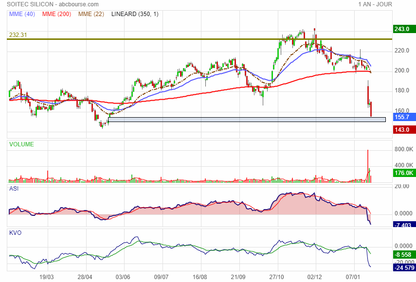 Mais quand on voit les volumes aujourd'hui ils ne sont pas du tout conséquents sur Soïtec ce qui me donne à penser que le gros de la purge a été fait. Maintenant tout est aussi fonction de la réaction possible de Fonds qui veulent spéculer sur le titre.