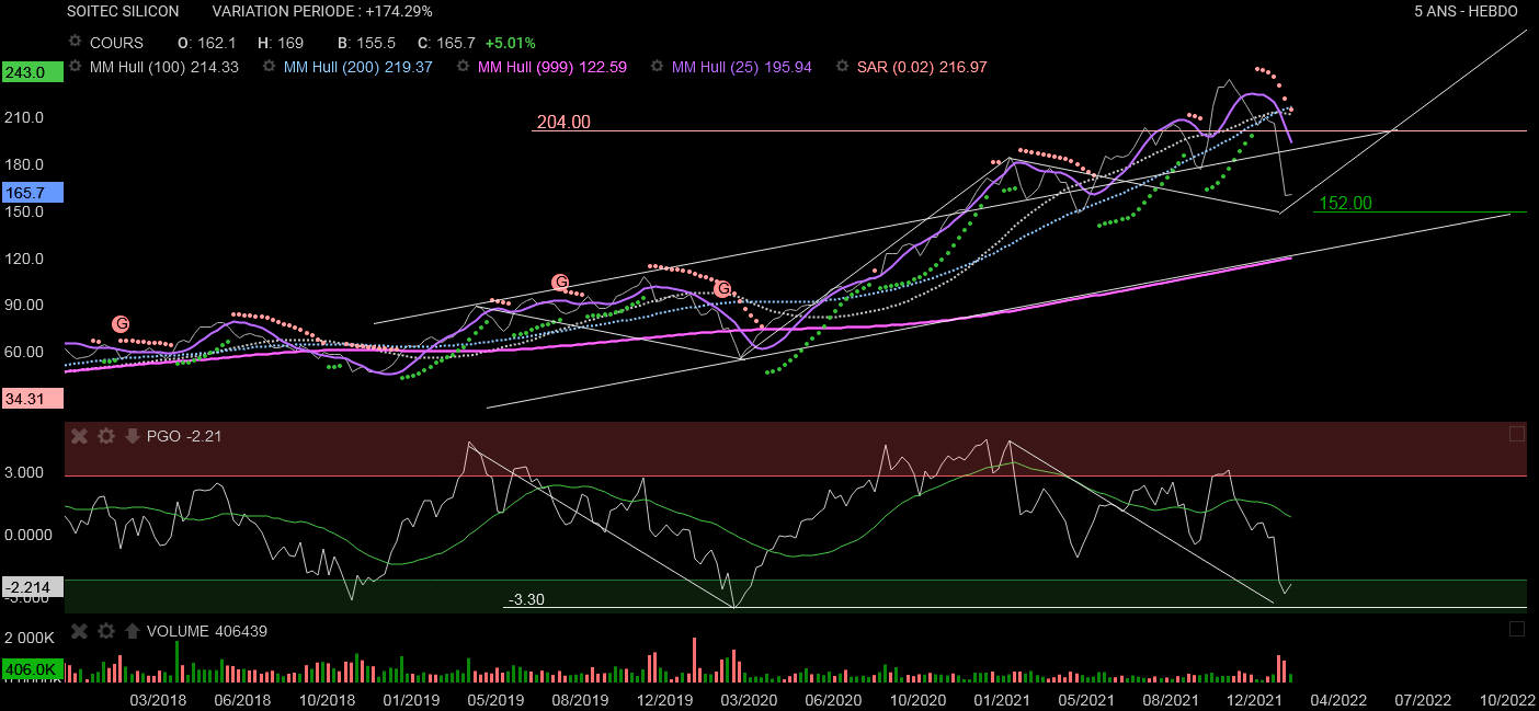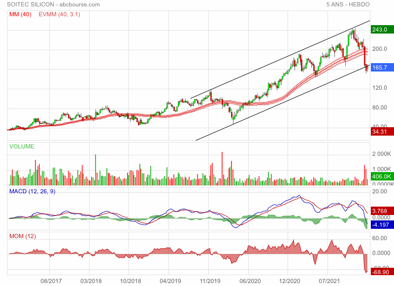 Le canal haussier est cassée et la tendance reste baissière. Le Per reste élevé et SOI est une valeur de croissance sur un marché porteur.