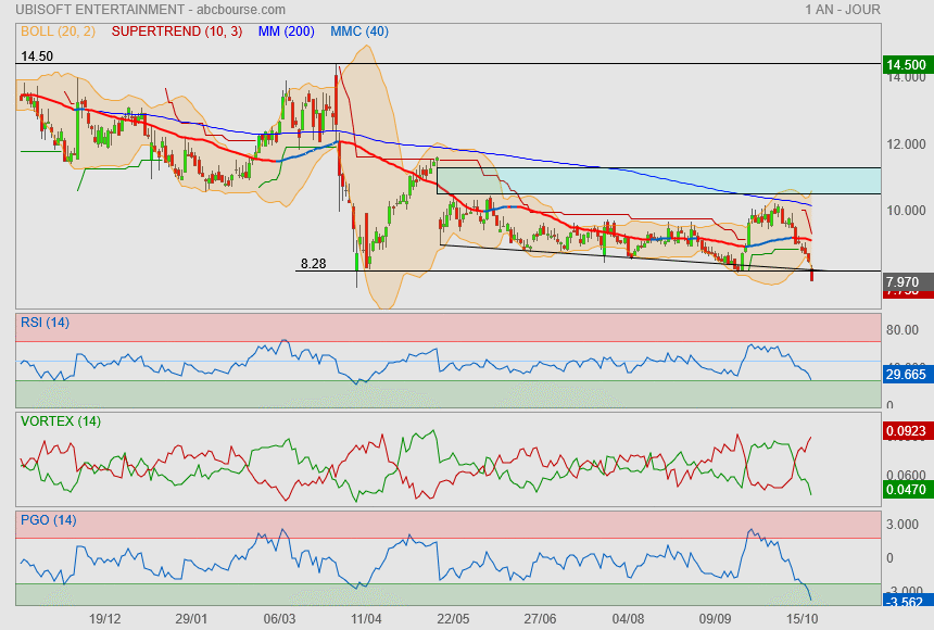 ubisoft est l'action piège à 100% : les fondamentaux (news, etc) trompent les gens à acheter ou restés dessus, mais le graphique montre bien une belle tendance de fond baissière...