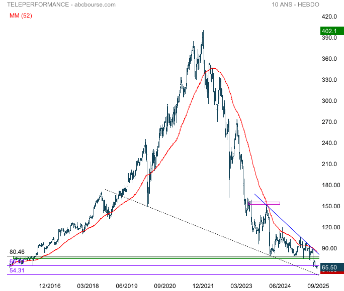 Teleperformance c’est stabilisé cette semaine à 65.50€