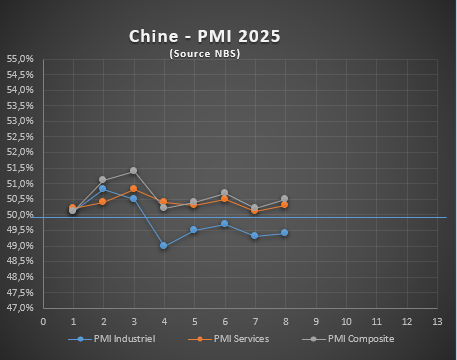 PMI et Tableaux comparatifs Import-export + balance commerciale 2025 et 2024