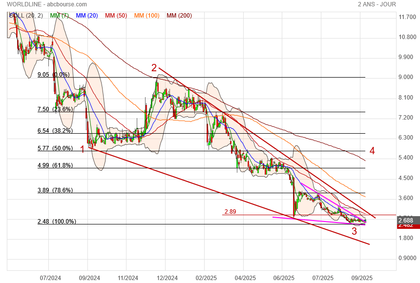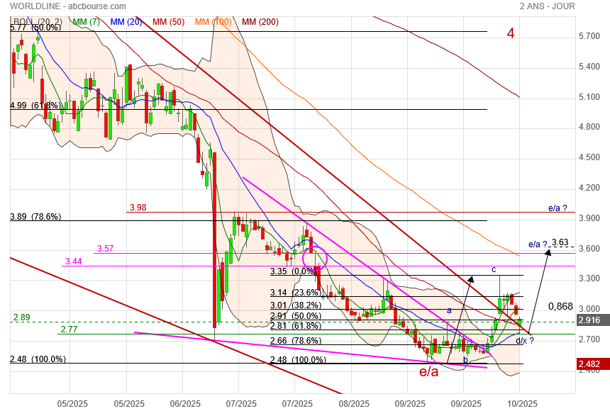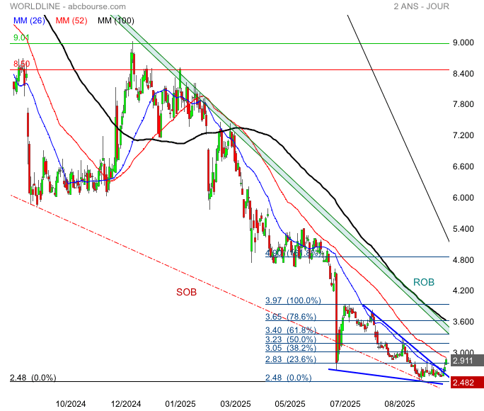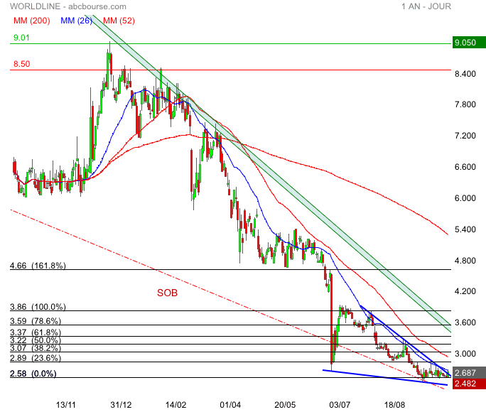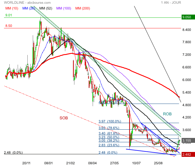 Worldline test la mm100 ce matin mais fini par clôturer >>3.05 fibo 38% a 3.15€