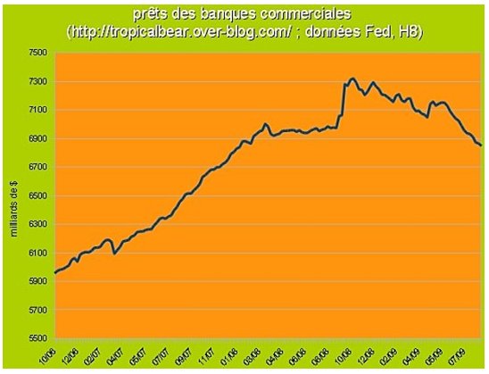 Un dernier graphique pour finir : les prêts des banques commerciales (stat H8 de la FED).