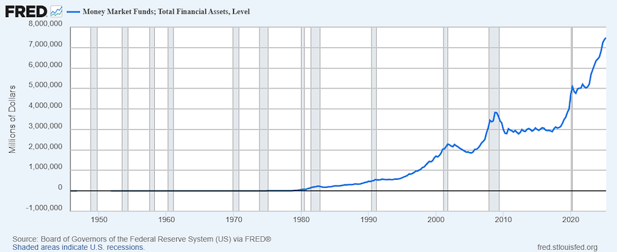 Le plus grand pool de liquidités est le complexe de fonds du marché monétaire de 7 milliards de dollars, dont le coût d’opportunité est le taux d’offre du RRP.