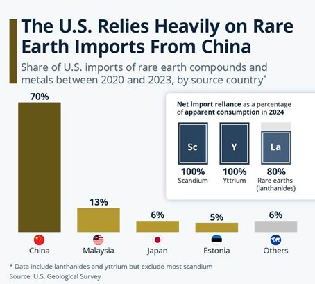 L’objectif de la Chine est clair : verrouiller la chaîne de valeur des terres rares de manière directe ou indirecte en freinant désormais la montée en puissance des capacités d’extraction / raffinage hors de Chine. Les autorités chinoises affirment ainsi leur position de force dans le secteur, ce qui conforte leur pouvoir de négociation pour les discussions commerciales ultérieures.