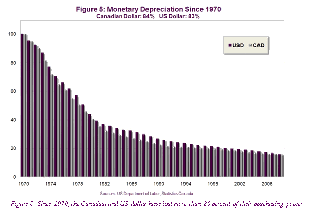 Depuis que l’étalon or a disparu, la dévaluation monétaire du dollar dépasse les 80% en seulement donc 40 ans !