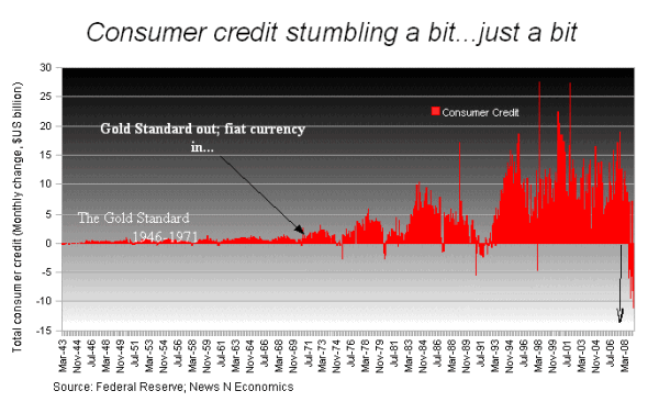 A noter que la recette ne semble plus fonctionner nickel avec la crise financière comme le montre ce dernier graphique, puisque les crédits à la consommation sont en chute libre, du genre JAMAIS VU dans les tablettes.