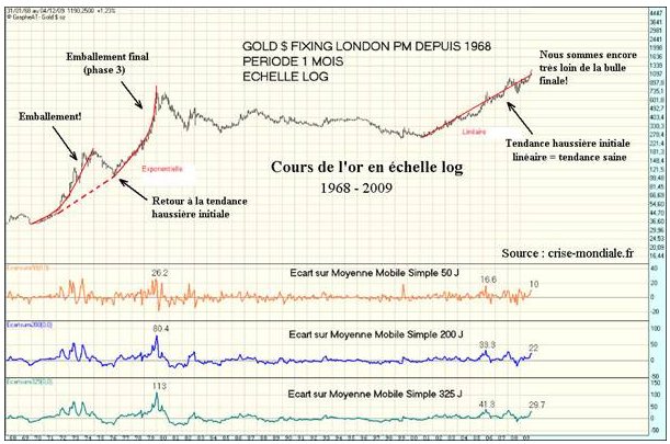 Nous pouvons comparer la période actuelle avec celle du dernier marché haussier sur l’or et l’argent, de 1971-1980, qui s’était terminée comme tous les grands marchés haussiers, avec la formation d’un sommet en ascension parabolique !