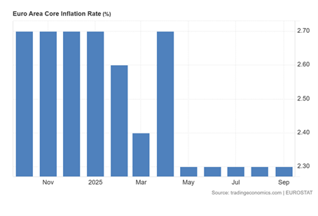 Le troisième facteur est énergétique : les prix du pétrole et du gaz restent relativement contenus, et la composante énergétique de l’inflation, encore négative en glissement annuel (–0,4 % en septembre), ne pousse plus à la hausse l’indice global.