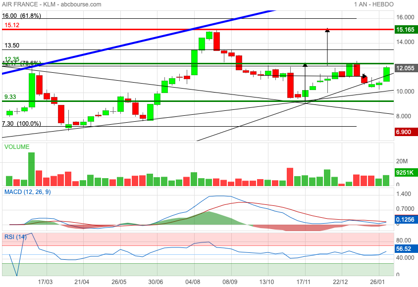 Avec l'accord chez KLM entre pilotes et direction, le potentiel à venir semble pouvoir permettre l'augmentation du titre vers des niveaux connus il y a 5 ans.