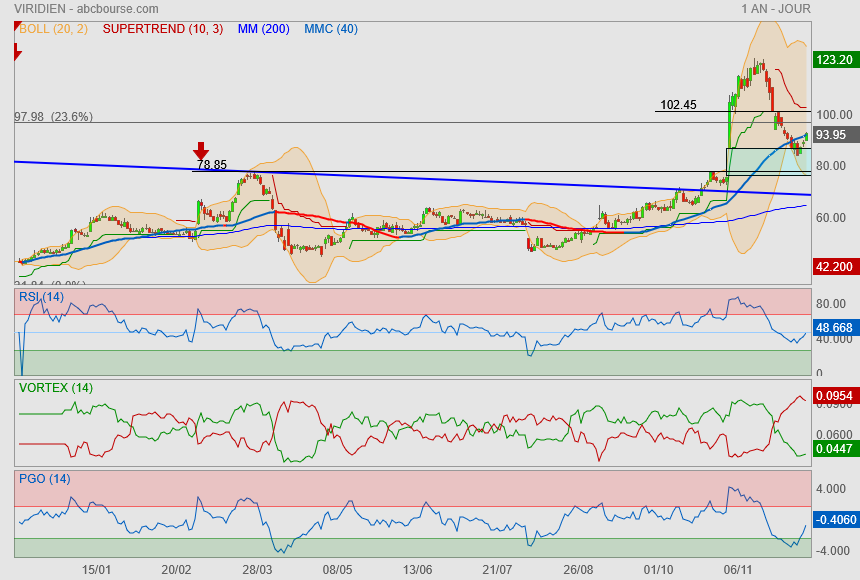 y aurait rien étonnant de voir le cours retourner sur son supertrend donc sous les 100€