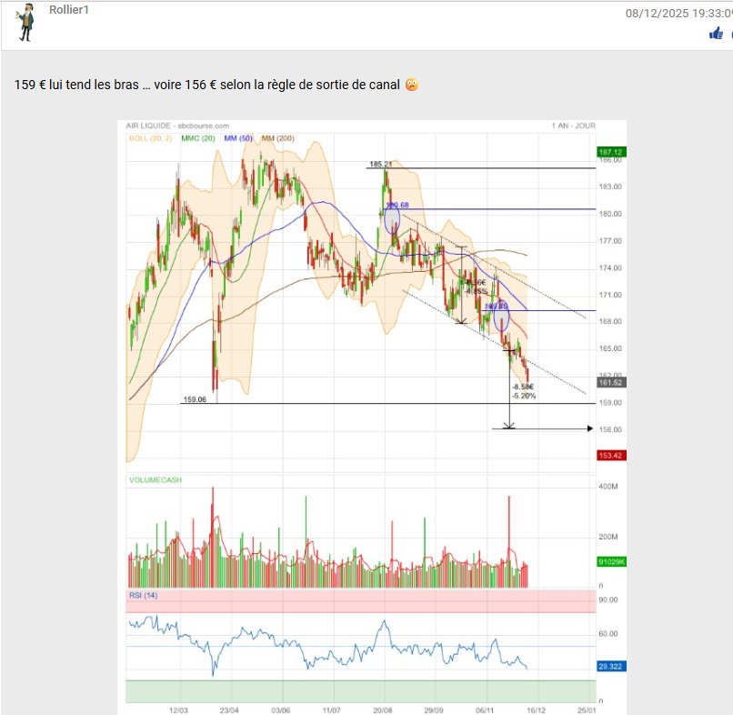 Sans roadshow, on peut facilement identifier une tendance baissière qui devrait amener le titre sur ~159 € 🤔
