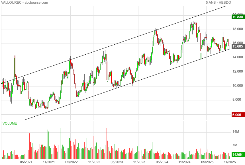 voici où nous en sommes actuellement avec l'évolution du cours de Vallourec.