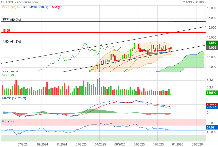 Personnellement, je pense que l'année 2026 verra orange continuer à s'apprécier , avec un premier objectif à environ 15,5 euros, mais la possibilité d'atteindre les 20 euros d'ici deux ans.