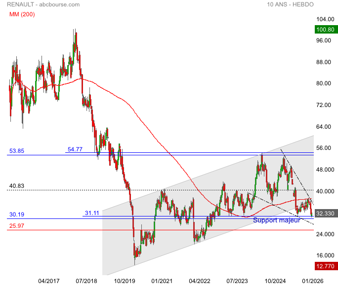 On pourrait concevoir que le cours forme un biseau descendant et prochain point de retournement
