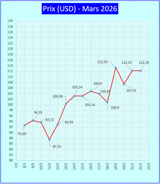 Brent : 112,19 Us$ +2.75%